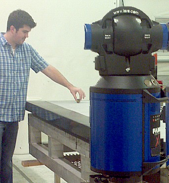 FARO is quick & easy (once you know the machine's many programs) and only requires one person to gather data points , not the typical 2 person team (Shooter & stickman) . The operator moves the cat's eye prism from point to point and the FARO automatically seeks it's target and records the shot . A remote control is also in the operator's pocket in case of problems resulting from extreme environments or a very crowded workspace . Once you've used a FARO it can seem a little difficult going back to our familiar N3/T2 method of working .