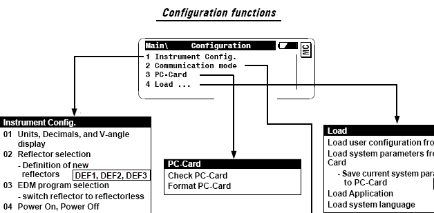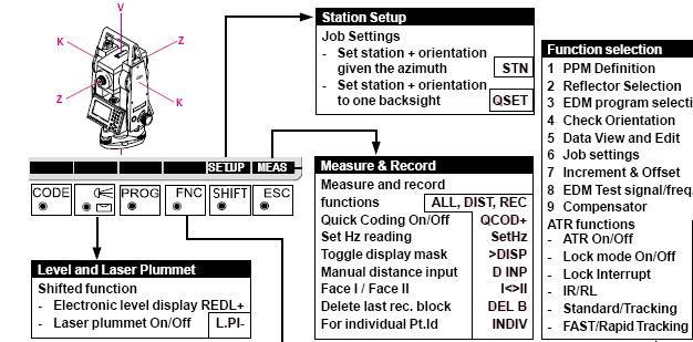 Above Sheet shows Configuration Functions in the upper part . In the lower section a Listing of the actual Leica Application Programs available . Keep in mind that there are an almost limitless collection of after market software applications that can be installed into Leica Total Stations allowing the user to customize their machine for specific field uses .